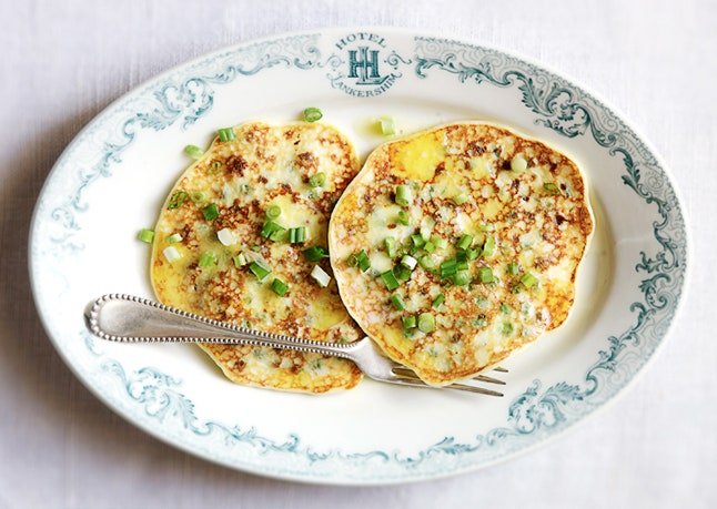 Topping these fresh blini-like pancakes with smoked salmon would make an ideal appetizer for a party.